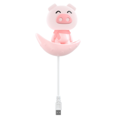 产品名称:USB夜灯(粉色 - 站姿小猪) 产品规格: 11.1x13.1x23.3cm 外箱尺寸: 46x44x42 cm 产品包装: 彩盒 装箱数量: 72 PCS 材 质: 塑料 颜 色: 粉色;蓝色;薄荷绿;白色 供电方式:可充电