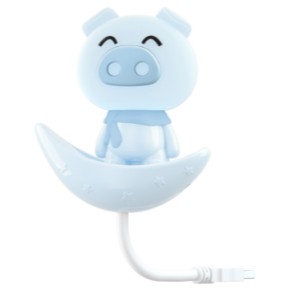 产品名称:USB夜灯(蓝色 - 站姿小猪) 产品规格: 11.1x13.1x23.3cm 外箱尺寸: 46x44x42 cm 产品包装: 彩盒 装箱数量: 72 PCS 材 质: 塑料 颜 色: 粉色;蓝色;薄荷绿;白色 供电方式:可充电