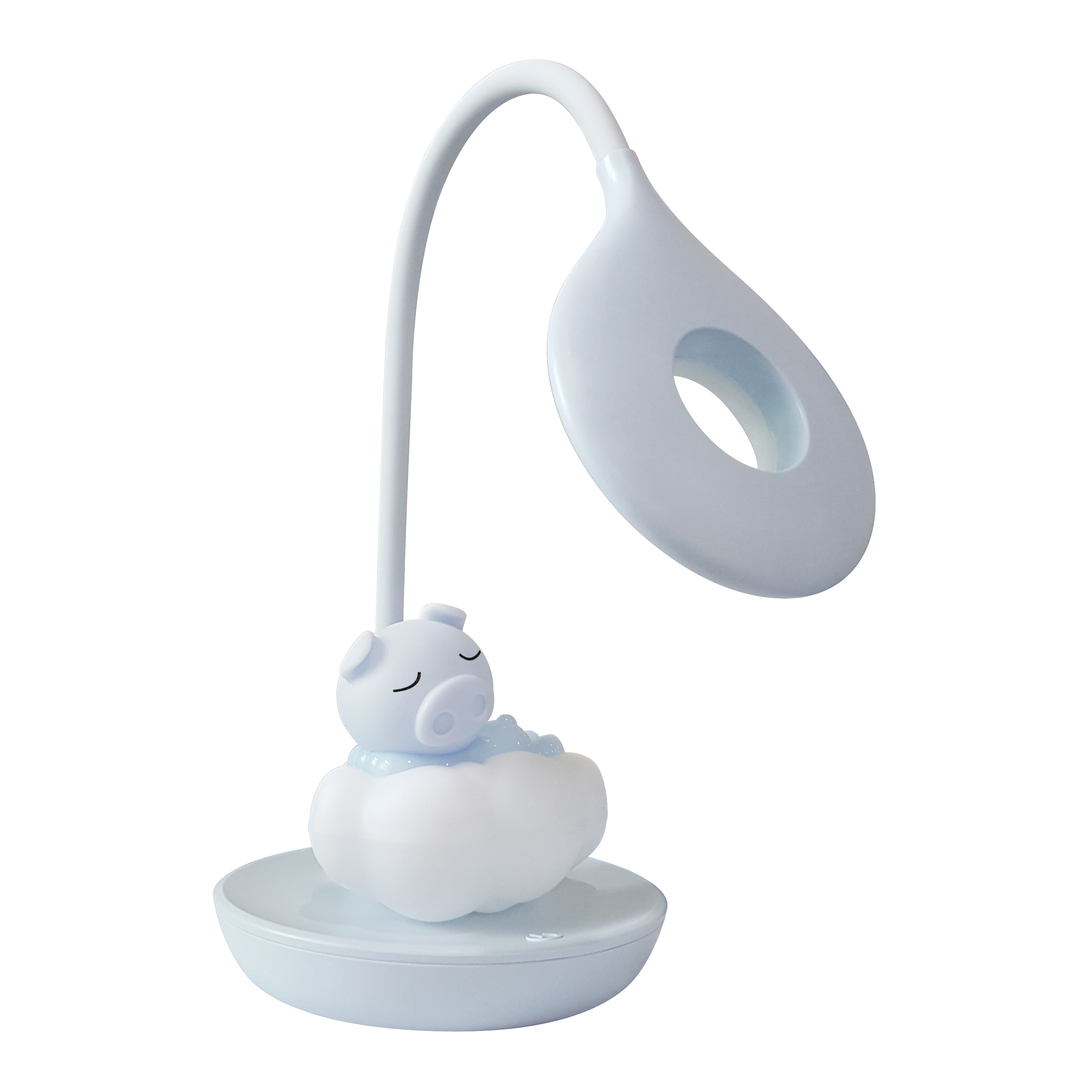 ITEM NO.: BS2595 Name: Cartoon Touch LED Reanding Lamp and Night Light(Cloudy-Blue Piggy) SIZE: 13x13x36cm MEAS: 55x41.5x47cm PACKAGE: COLOR BOX QTY/CTN: 24 PCS MATERIAL: Plastic GW/NW: COLORS:Pink;Blue;Peppermint;White